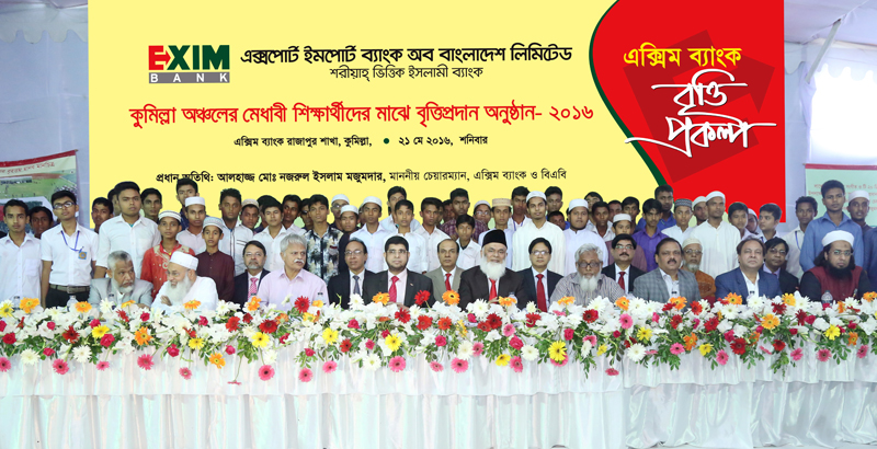 কর্পোরেট সামাজিক দায়িত্ব পালনের অংশ হিসেবে কুমিল্লা অঞ্চলের প্রায় দুইশতাধিক মেধাবী ছাত্র-ছাত্রীদের মাঝে বৃত্তি প্রদান করল এক্সিম ব্যাংক। সম্প্রতি কুমিল্লার মনোহরগজের রাজাপুরে এক অনুষ্ঠানে এই সব শিক্ষার্থীর হাতে ২০১৬ সালের বৃত্তির চেক তুলে দেন অনুষ্ঠানের প্রধান অতিথি এবং এক্সিম ব্যাংক ও বাংলাদেশ এসোসিয়েশন অব ব্যাংকস এর চেয়ারম্যান মোঃ নজরুল ইসলাম মজুমদার এবং সভাপতিত্ব করেন ব্যবস্থাপনা পরিচালক ড. মোহাম্মদ হায়দার আলী মিয়া। এ সময় আরো উপস্থিত ছিলেন ব্যাংকের পরিচালনা পর্ষদের সদস্য মোঃ শহিদুল্লাহ, লে. কর্নেল অব. সিরাজুল ইসলাম বীরপ্রতিক (বার), খন্দকার মোঃ সাইফুল ইসলাম, রঞ্জন চৌধুরী, সোস্যাল ইসলামী ব্যাংক লিমিটেডের ভাইস চেয়ারম্যান মোঃ সাইদুর রহমান, চিকিৎসক মোঃ নুরুল ইসলাম মজুমদার, দৈনিক ভোরের পাতা পত্রিকার সম্পাদক ড. কাজী এরতেজা হাসান ও স্থানীয় গণ্যমান্য ব্যক্তিবর্গ।