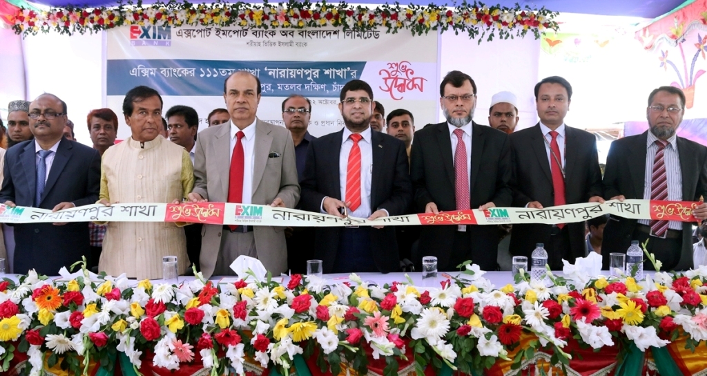 প্রাচীন ঐতিহ্যের শহর চাঁদপুরের নারায়ণপুরে এক্সপোর্ট ইমপোর্ট ব্যাংক অব বাংলাদেশ লিমিটেড এর ১১১তম শাখার শুভ উদ্বোধন করা হয়েছে। আজ (অক্টোবর ২২, ২০১৬) নারায়ণপুর, মতলব দক্ষিণ, চাঁদপুর এলাকায় অবস্থিত শাখায় আয়োজিত উদ্বোধনী অনুষ্ঠানে প্রধান অতিথি হিসেবে উপস্থিত ছিলেন এক্সিম ব্যাংকের ব্যবস্থাপনা পরিচালক ও প্রধান নির্বাহী ড. মোহাম্মদ হায়দার আলী মিয়া।