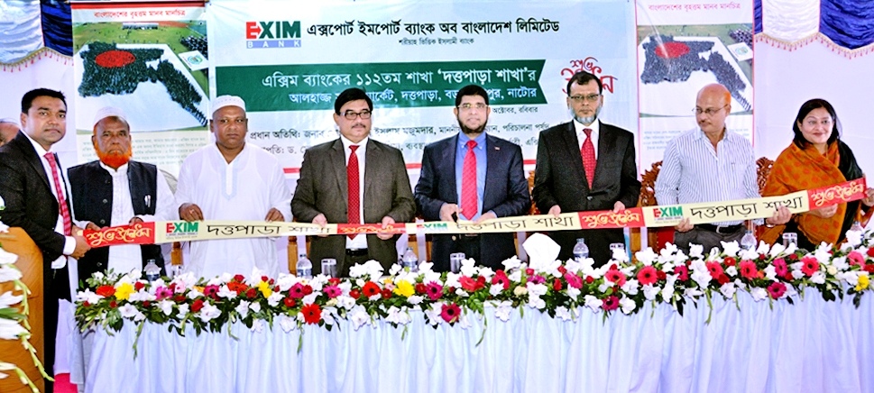 প্রাচীন ঐতিহ্যের শহর নাটোরের দত্তপাড়ায় এক্সপোর্ট ইমপোর্ট ব্যাংক অব বাংলাদেশ লিমিটেড এর ১১২তম শাখার শুভ উদ্বোধন করা হয়েছে। গত (অক্টোবর ৩০, ২০১৬) নাটোরের দত্তপাড়ার আলহাজ্জ সুপার মার্কেট,বড় হরিশপুর, এলাকায় অবস্থিত শাখায় আয়োজিত উদ্বোধনী অনুষ্ঠানে প্রধান অতিথি হিসেবে উপস্থিত ছিলেন এক্সিম ব্যাংকের ব্যবস্থাপনা পরিচালক ও প্রধান নির্বাহী ড. মোহাম্মদ হায়দার আলী মিয়া। অনুষ্ঠানে এছাড়াও উপস্থিত ছিলেন নাটোর পৌরসভার মেয়র উমা চৌধুরী জলি, নাটোর সদর উপজেলা চেয়ারম্যান শরীফুল ইসলাম রমজান, ব্যাংকের উপব্যবস্থাপনা পরিচালক শাহ্ মোঃ আব্দুল বারী সহ প্রধান কার্যালয়ের নির্বাহীবৃন্দ ও এলাকার গণ্যমাণ্য ব্যক্তিবর্গ।