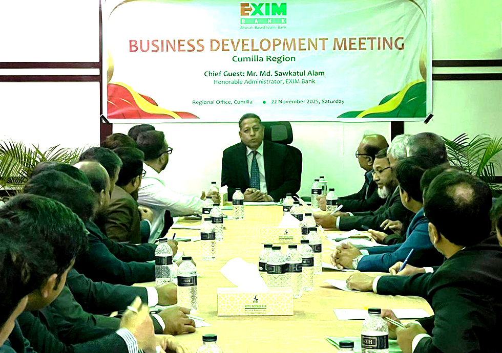 এক্সিম ব্যাংকের কুমিল্লা অঞ্চলের ব্যবসা উন্নয়ন সম্মেলন গত (২২ নভেম্বর ২০২৫) অনুষ্ঠিত হয়েছে। সম্মেলনে প্রধান অতিথি হিসেবে উপস্থিত ছিলেন এক্সিম ব্যাংকের প্রশাসক এবং বাংলাদেশ ব্যাংকের নির্বাহী পরিচালক মোঃ শওকাতুল আলম। অনুষ্ঠানে আরও উপস্থিত ছিলেন ব্যাংকের কুমিল্লা অঞ্চলের আঞ্চলিক প্রধান মোঃ মাকসুদুল ইসলামসহ সকল শাখা ব্যবস্থাপক ও উপশাখা ইনচার্জবৃন্দ।